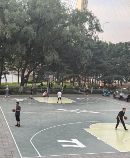 該籃球場的位置在沈陽市奧林匹克生態公園。從圖片來看,球場上印有張鎮麟的球衣號碼“77”以及姓氏字母縮寫“Z”。