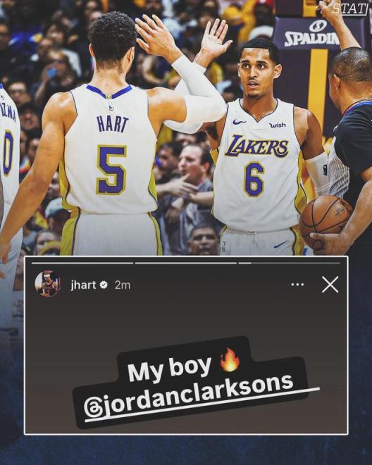 還有兩名前洛杉磯湖人球員重聚,那就是喬丹克拉克森和約什哈特。據報道稱,喬丹克拉克森已經與猶他爵士達成了買斷協議,他接下來坐等澄清期過去,與尼克斯續約一份不錯的合同。約什哈特已經發文慶祝,與前隊友喬丹克拉克森在紐約尼克斯重聚。