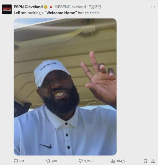 今年休賽期,詹姆斯戴著Welcome Home(歡迎回家)的帽子自拍,并且回到騎士的訓練館訓練。那騎士會不會交易得到詹姆斯?NBA記者Sam Amico表示,騎士對交易沒有興趣,只想等湖人買斷詹姆斯,騎士用老將底薪簽下。