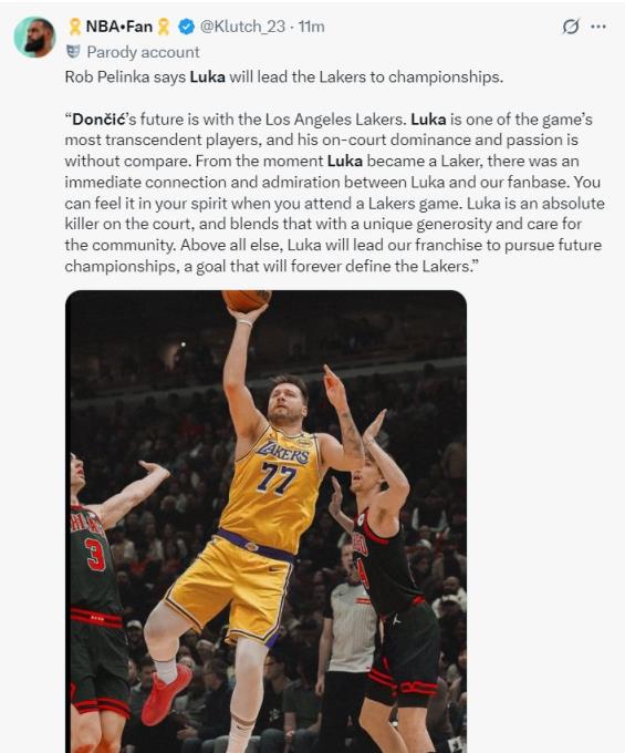 佩林卡談到東契奇:他將幫助湖人奪得總冠軍,他是當今籃球界最具影響力、最具魅力的球員之一,他在球場上的統治力和激情無人能及。自從他成為湖人球員以來,他與我們就產生了強烈的共鳴,盧卡絕對是一位出色的球員,他將帶領我們去奪得NBA總冠軍。